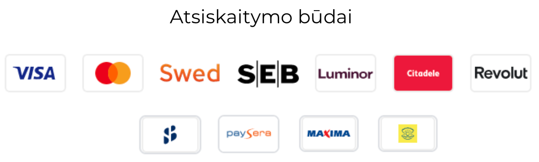 Mokesčiai įtraukti. Siuntimo išlaidos apskaičiuojamos atsiskaitant.